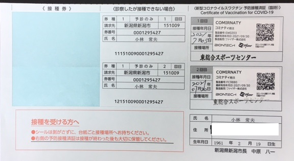 私自身のワクチン接種は2回完了しました。