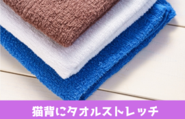 ・タオルの両端を持ち、両手を上に上げて下さい。